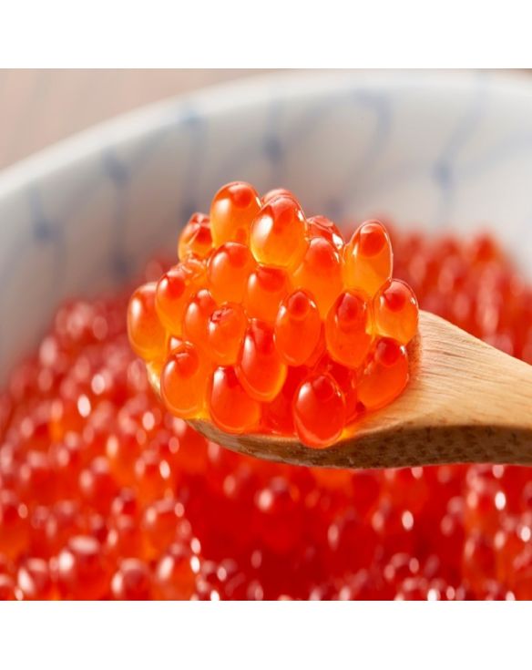 Ideales para la guarnición del sushi y platos de pescado. El Ikura también llamado “caviar rojo”, son las huevas de salmón. En forma de esfera y de un color naranja-rojizo, son unas huevas de pescado muy utilizadas en la gastronomía japonesa.